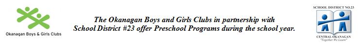 The preschool provides children with a program where they will be encouraged to explore, learn, and grow in a stimulating and fun environment. Preschoolers will develop and practice social and language skills, cooperative play, independent thinking and an awareness of self. For those who qualify, Okanagan Boys and Girls Clubs offer tuition sponsorships.